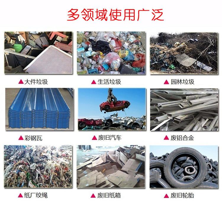 撕碎機(jī)按軸的數(shù)量可分為: 單軸撕碎機(jī)、雙軸撕碎機(jī)、 三軸撕碎機(jī)、 四軸撕碎機(jī);可滿足各行業(yè)的廢料回收要求,適合撕碎較厚難碎物料,如:電子垃圾、塑料、金屬、木材、廢舊橡膠、包裝桶、托板等。可回收材料種類繁多,經(jīng)撕碎后的物料可直接回收使用或根據(jù)需求作進(jìn)一步細(xì)化處理。適用于工業(yè)廢棄物回收、醫(yī)療回收、電子制造、托板制造、木材加工、生活垃圾回收、塑料回收、輪胎回收、造紙等行業(yè)的應(yīng)用。
